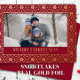 Célébrez la saison avec élégance grâce à cette carte photo de Noël aux véritables accents de feuille d'or et aux élégants flocons de neige rouges. La simple typographie met en valeur votre accueil chaleureux "Joyeux Noël", tandis que la motif classique d'hiver ajoute une touche de charme intemporel. Parfait pour les amateurs de design minimaliste mais traditionnel, cette carte de vacances saisit l'essence de la saison avec un look raffiné et poli. Partagez votre joie de vacances avec vos amis et votre famille grâce à cette carte magnifique et minimale qui allie élégance moderne et esprit de vacances classique.