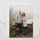Elégante carte de vacances en feuille d'or avec "Joyeux Noël" affichée dans le script en feuille d'or. Personnalisez l'avant de la carte de Noël en feuille avec votre photo verticale préférée et votre nom. La carte revient à un motif plaid de buffle gris avec de l'espace pour des photos ou du texte supplémentaires. Photo de l'espace réservé © John Hope Photography : www.flickr.com/people/johnhopephotography et fournie par Creative Commons Attribution 2.0 Generic : https://creativecommons.org/licenses/by/2.0/