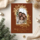 Envoyez des voeux de vacances chaleureux avec cette carte de Noël élégante avec un arrière - plan en terre cuite profonde et un cadre luxueux en feuille d'or faux de fleurs festives et feuilles. Le design avant présente magnifiquement votre photo de famille préférée, mise en évidence par des détails dorés complexes pour un look intemporel et sophistiqué. Le dos de la carte est magnifiquement conçu avec un accueil de vacances déjà inclus, ce qui en fait une option complète et prêt à envoyer pour répandre la joie cette saison de Noël. Personnalisé avec votre nom de famille et votre année, ce design réfléchi devient un souvenir que les êtres chers vont chérir. Parfait pour envoyer des voeux de Noël à des amis, des parents ou des collègues avec une touche d'élégance et de chaleur. Design par Anna Szalacha © Happy Ann Designs.