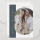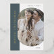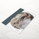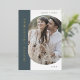 EMELIA Blue Gold Foil Oval Photo Joyeux Noël Foil Carte de vacances. Personnalisez l'avant de la carte avec une photo, votre nom de famille et l'année. Personnalisez le dos avec un accueil de vacances ou des nouvelles de famille en option, et votre nom de famille.