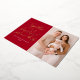 Carte de Noël photo moderne avec l'expression "Ensemble est un bel endroit à être" affichée dans un script manuscrit en feuille d'or avec un arrière - plan rouge. Personnalisez la carte de vacances avec votre nom de famille, votre année et votre photo verticale. La carte revient à un motif de flocon rouge et blanc.