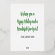 Vos clients aimeront cette carte de vacances moderne dans les arbres de Noël. Le devant dit Joyeuses Fêtes en papier d'aluminium. Le dos a un accueil de vacances et un endroit pour votre nom d'entreprise que vous pouvez personnaliser pour votre entreprise.