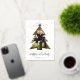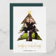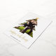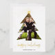Envoyez des salutations de vacances joyeuses avec ces beaux cartes photos de vacances avec une image verticale ou portrait orientée à l'intérieur d'une illustration découpée d'arbre de Noël moderne surmontée d'une étoile dorée. "Joyeuses fêtes" apparaît sous la feuille d'or en écriture, avec votre nom de famille et l'année en dessous. Ajoutez une photo supplémentaire et un message personnel à l'arrière.