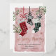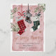 Annoncez l'arrivée de votre nouveau bébé cette saison de Noël avec notre belle et festive carte de Noël de grossesse faire-part. Notre design comprend notre motif en plaid aquarelle peint à la main et accroché des bas de Noël en rouge, vert et noir. Chacune des bas de Noël est customisée avec le nom du parent. Le bas de plaid noir moyen est écrit avec "Baby" pour annoncer l'arrivée de votre nouveau membre de la famille. "So Very Merry" est présenté en calligraphie blanche et élégante. Customisez le nom de votre bébé et la date d'arrivée, ainsi que le nom du parent et de l'accueil. Le revers de la page présente notre couronne festive aquarelée avec le bas du bébé suspendu au milieu et customisé avec le monogramme du bébé. Il s'agit d'une carte de vacances unique mémorable à envoyer à votre famille et à vos amis pour annoncer l'arrivée de votre bébé cette saison de vacances.