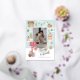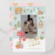Adressez vos vœux de fêtes à votre famille et à vos amis avec notre carte en papier alu à motif gâteau de Noël, ludique et festive. Notre design présente notre propre décor de ville en pain d'épices, réalisé à l'aquarelle et peint à la main. Chaque petit détail est capturé dans cette scène de quartier charmante. La carte comprend des maisons en pain d'épices décorées de friandises festives, des arbres enneigés de rose, des enfants qui jouent, une boîte aux lettres rouge et des cadeaux. Personnalisez-la avec la signature de votre famille, une photo de famille et l'année, et placez-la sur le côté de la boîte aux lettres rouge. Des accents de papier alu doré sont ajoutés partout. Le verso présente un motif de bonbons amusant. Toutes les illustrations sont des œuvres d'art originales peintes à la main par Moodthology Papery.