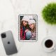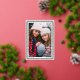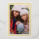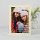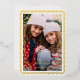 Ce carte photo de vacances moderne dispose d'une photo verticale, d'un arrière - plan blanc classique et d'un cadre inspiré de papel picado en feuille d'or surélevée. Le salut et votre texte personnalisé sont également en relief. Ce design est festif et élégant ! La couleur arrière - plan est entièrement personnalisable. Le papier peint sur cette carte brille vraiment et ajoute cette touche spéciale à vos cartes de fin de année !