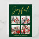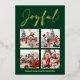 Festive Gold Script JOYFUL Modern Green 4 Photo Collage Real Foil Carte de vacances. Envoyez des voeux de vacances à vos proches avec cette carte de vacances Foil moderne et festive. Tous les textes sont pré-arrangés pour que vous personnalisiez facilement et rapidement avec vos propres détails. Joyeuses fêtes !