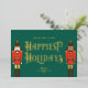 Cette fête festive non-carte photo présente un arrière - plan vert foncé avec deux noix de cou de chaque côté de la garde debout, et le salut "Happiest Holidays" en feuille d'or. Les noix de cou sont habillées de rouge et de brun foncé et accentuées de feuille d'or. Votre nom est aussi en feuille d'or. Sur le dos vous trouverez un arrière - plan motif de flocon vert foncé et blanc, auquel vous pouvez ajouter une autre photo et/ou du texte supplémentaire. La feuille d'or levée sur cette carte brille vraiment et ajoute cette touche spéciale à vos cartes de fin de année. L'huile est disponible en or, argent et or rose. Voir notre collection de cartes de voeux pour plus d'articles!