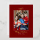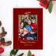 Simple et sucré, ce carte photo de vacances de Noël dispose de polices d'écriture et de graphisme d'arc simple moderne en feuille métallique brillante pour célébrer la saison dans un style tendance et moderne. Votre photo d'orientation portrait est encadrée par une fine ligne rouge sur un message de bienvenue saisonnier et le texte de nom de famille avec espace pour un message plus long et en profondeur de soutien sur le dos.