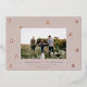 Un design moderne et élégant de cartes de vacances de Noël avec une photo horizontale sur un arrière - plan taupe clair parsemé de pins à feuille d'or rose. Personnalisez avec votre salutation de vacances personnalisée, le nom de famille et l'année en dessous.