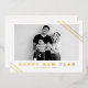 Bonne année ! Envoyez vos souhaits chaleureux cette saison avec cette carte photo personnalisable de Nouvel An. Il dispose d'une typographie simple et de rayures accent. Personnalisez en ajoutant votre photo, nom, année et autres détails. Cette carte New Year en feuille d'or est disponible en d'autres couleurs et en carton.