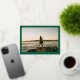 Carte De Vœux En Aluminium Green Frame Gold Brush Script Photo Christmas