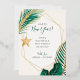 La carte de nouvelle année de Nautical Boutique Co., en feuille verte et or, présente une verdure tropicale vert et or d'aquarelle et est agrémentée d'une jolie étoile de mer. Le texte est de fantaisie en lettrage manuel associé à la typographie de bloc moderne. Le vert, l'or et l'ivoire crémeux rappellent les jours des destinations balnéaires tropicales et de Noël côtier. Customisez facilement tout le texte, y compris "Bonne année" et l'accueil. #Nouvel An #Cartes du Nouvel An #NoëlCôtier