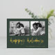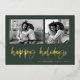 Ce carte photo de vacances familial vert classique simple présente une typographie décontractée et moderne en feuille d'or qui dit "happy holiday", avec une grille photo à l'avant pour un design de vacances élégant, moderne et minimaliste.