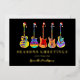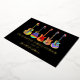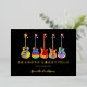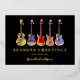 Carte de Noël de guitare colorée personnalisée. Thème de musique festive avec Black & Gold Foil Rocher vos salutations de vacances en style avec cette carte de Noël personnalisée à thème musical avec une gamme ludique de guitares acoustiques, électriques et semi-acoustiques, chacune surmontée d'un chapeau de Père Noël festif. L'audacieux arrière - plan noir jumelé à la typographie chatoyante de feuille d'or fait éclater les motifs vibrants et psychédéliques de la guitare, créant une touche amusante et moderne sur les cartes de fin de année traditionnels. Parfait pour les musiciens, les guitaristes, les professeurs de musique ou les rock stars en herbe, cette carte de voeux unique et drôle de vacances répand la joie avec une ambiance cool et jazzy. Ajoutez votre propre nom, message ou salutation saisonnière facilement en utilisant les modèles de personnalisation Zazzle pour en faire un véritable de type. Oeuvre originale de l'artiste Catherine Sweetman.