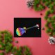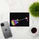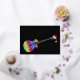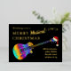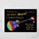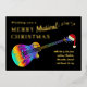 Apportez une musique de guitare festive à la saison de noël avec cette joyeuse carte de Noël moderne noir et or feuille de vacances. Drôle à la main dessinée à l'arc-en-ciel couleurs semi-acoustique guitare électrique portant une illustration de chapeau de Père Noël avec des notes musicales en feuille d'or et script de typographie tout facile à personnaliser avec le modèle. Idéal pour les familles amateurs de musique à envoyer des Joyeuses Fêtes et pour les joueurs de guitare, professeurs de musique et musiciens. OEuvre originale de Catherine Sweetman