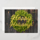 Carte De Vœux En Aluminium Happy Holidays Country Rustic Pine Wreath Wood