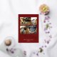 Carte de vacances moderne en rouge bordeaux foncé, customisée d'un collage photo de quatre images de votre choix à l'intérieur d'un cadre doré délicat - véritable feuille d'or pour Joyeux Noël. La couleur et la couleur Arrière - plans des bandes sur le dossier peuvent être modifiées dans l'outil de conception si vous le souhaitez.