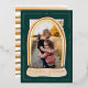 Carte de vacances photo de Noël unique, moderne, et magique moderne neige globe pour envoyer à votre famille et à vos amis cette saison de vacances. Design dispose d'un cadre photo unique avec une bande arc-en-ciel moderne avec un cadre de globe de neige à bandes dorées. "Happy Place" est affiché dans un élégant script de feuille d'or dans la base du globe de neige. Un cadre simple et moderne en feuille d'or crée des sections pour afficher l'année, l'accueil de vacances et la signature de la famille. De simples étoiles en feuille d'or et la neige tombante recouvrent la photo pour ajouter un scintillement et un look magique. L'envers offre un design moderne à bandes dorées et multicolores. Toutes les oeuvres et illustrations sont des oeuvres d'art originales dessinées à la main par Moodthology Papery.
