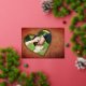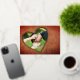 Heart Leather Print Love Valentine`s Day Carte photo. Impression en cuir et écriture d'amour dorée. La photo est en forme de coeur. Ajoutez votre texte à l'arrière.