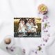 Un design moderne et élégant de carte de Nouvel An avec votre meilleure photo de paysage familiale ou de couple et une citation "HAPPY NEW YEAR" en papier peint. Personnalisez avec votre salutation de vacances personnalisée, le nom de famille et l'année. Un motif festif sur le dos sur éditable couleur bleu poussiéreux