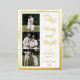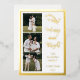 Cette conception de quatre photos est conçue entièrement avec du texte en feuille d'or (ou choisissez argent ou or rose) et des accents avec des feuilles de houx et des baies en feuille d'or pour aller avec le message éditable "Joyeux et Lumineux". Caractéristiques trois photos carrées plus petites sur le devant de haut en bas avec une seule photo plus grande sur le dos. Les photos du devant sont accentuées avec des cadres simples en feuille d'or. Conception composite par Holiday Hearts Designs.