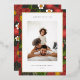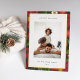 Partagez vos voeux de vacances avec ces cartes de Noël photo avec votre photo préférée sur un arrière - plan de fleurs et de botaniques de vacances en rouge et vert festif avec une bordure en feuille d'or. Une zone de message modifiable vous permet de customiser votre accueil de vacances en lettres modernes. Ajoutez votre nom de famille ou vos noms en-dessous.