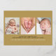 An elegant real gold foil photo holiday birth announcement card featuring your 4 special favorite photos, baby's name and birth stats, and your holiday message set in classic modern typography. Designed by Thisisnotme©