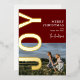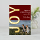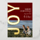 Étalez JOY avec cette carte de vacances de Noël en feuille d'or minime. Design propose un arrière - plan rouge festif qui peut être changé à n'importe quelle couleur, de véritables lettres d'or (le mot JOY), un accueil de saison et votre nom.