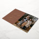 Carte photo de vacances moderne avec l'expression "Joy to the World" dans élégant script en feuille d'or avec un arrière - plan marron mocha. Personnalisez l'avant de l'élégante carte de vacances avec votre nom de famille, année, et photo verticale.