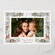 Cette magnifique carte de vacances photo présente un cadre de feuillage détaillé, qui comprend des feuilles, des épis de pin, des baies et deux mignons petits cerfs, ainsi que de la typographie simple à la lecture supérieure, "JOY." L'orientation du modèle photo et de la carte est horizontale. Les véritables accents de papier peint apportent une touche de classe. Facile à personnaliser pour des cartes stylisées à envoyer à la famille et aux amis! Le dos est un vert turquoise gris uni assorti mais peut être customisé à n'importe quelle couleur. Ajoutez plus de photos à l'arrière, laissez-les en l'état, ou allégez la couleur (ou choisissez le blanc) pour pouvoir facilement écrire des notes personnalisées.