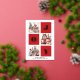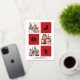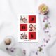 JOY Elegant Gold Snowflakes Script moderne sur la couleur rouge festive 3 Photo Collage Real Foil Holiday Card. Envoyez des voeux de vacances à vos proches avec cette carte de vacances moderne et festive. Tous les textes sont pré-arrangés pour que vous personnalisiez facilement et rapidement avec vos propres détails. Joyeuses fêtes !