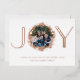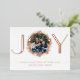 Easy to use template so you can personalized this elegant real foil holiday card with your own photograph and message and order your prints! Design with phrase "JOY" with delicate wreath as letter "O" in foil, and with your photograph inside. No need to add a circular image, Zazzle will automatically do it for you and will add image in the correct spot. Three foil color options available, gold, silver or rose gold. Cheerful, elegant and simple design. Back in white.