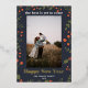Carte de vœux Bonne Année 1 Photo avec illustration botanique florale de fêtes de houx, avec véritable feuille d'or. Carte de vœux modernes et élégantes pour le Nouvel An. Conçue et illustrée par Kristine Lee www.kristineleedesigns.com