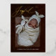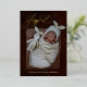 Bleu foncé Joyeuse Élégante Calligraphie Bébé Photo Vacances Gold Foil Faire-part de naissance avec un motif de Noël sur arrière - plan bleu au dos de la carte.