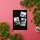 Carte de vœux personnalisée avec feuille d'argent. Le design présente 3 cadres pour vos photos préférées sur le devant et 1 photo imprimée sur tout l'arrière. Tout notre message d'amour est personnalisable pour que vous puissiez le modifier et le rendre unique. Le nom de famille est également en feuille d'argent. L'élégant fond noir est également personnalisable et peut être changé pour n'importe quelle couleur. Joyeuses Fêtes de Suki's