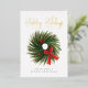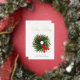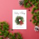 Une carte de vœux d'entreprise présente une illustration aquarelle d'une couronne de Noël avec Joyeuses Fêtes en typographie en feuille d'or. Personnalisez avec le nom de votre entreprise au recto et un message personnel avec votre logo au verso.