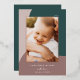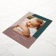 Un design chic et élégant de carte de vacances avec une seule photo verticale ou portrait sur un arrière - plan de formes organiques dans des tons doux de vert d'épinette et d'argile, et bordée dans un luxueux papier or rose. Personnalisez-vous avec votre nom de famille et saluez-vous sur mesure pour la touche finale parfaite à ces cartes photos de Noël 2022 inspirés par la nature.