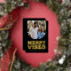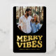 Envoyez ces joyeuses vibes avec cette carte de Noël rétro amusante ! Doté d'un amusant traitement de type "joyeuses vibes" sur le devant en feuille d'or, ce carte photo de vacances a également une forme unique de photo d'arc. Le dos a de la place pour trois photos supplémentaires et plus de texte personnalisé. Faites votre carte de vacances unique avec ce design élégant! Aussi disponible en d'autres couleurs et styles dans la collection de Lea Delaveris Design!