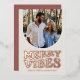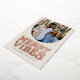 Envoyez ces joyeuses vibes avec cette carte de Noël rétro amusante ! Doté d'un amusant traitement de type "joyeuses vibes" sur le devant en feuille d'or rose, ce carte photo de vacances a également une forme unique de photo d'arc. Le dos a de la place pour trois photos supplémentaires et plus de texte personnalisé. Faites votre carte de vacances unique avec ce design élégant! Aussi disponible en d'autres couleurs et styles dans la collection de Lea Delaveris Design!