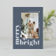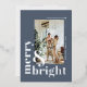 Souhaitez à votre famille et à vos amis un joyeux Noël lumineux avec cette simple et élégante carte de vœux de Noël en photo avec feuille d'or en couleur bleu poussiéreux clair.
