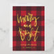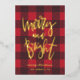Carte De Vœux En Aluminium joyeux et rouge vif feuille plaid script noël