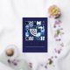 Hanukkah / Chanukah Bleu Blanc et élégant Vrai Papier d'Aluminium Argenté. Carte à motif géométrique moderne avec Menorah, Dreidel, Donuts, Étoiles & Huile d'olive... Symboles Hanukkah hébreux et juifs + Espace pour ajouter votre texte personnalisé au recto et au verso. Meilleurs vœux de Hanukkah. L'hébreu sur le devant dit "Chanukah". Ce look élégant et beau est un excellent moyen de souhaiter à vos amis, à votre famille et à vos clients un très Joyeux Hanukkah/Chanukah. Si vous souhaitez voir une variation de ce design, veuillez nous envoyer un message ou un e-mail à BestDressedBread@gmail.com.