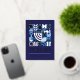 Hanukkah / Chanukah Bleu Blanc et élégant Vrai Papier d'Aluminium Argenté. Carte à motif géométrique moderne avec Menorah, Toupie, Donuts, Étoiles & Huile d'olive... Symboles Hanukkah hébreux et juifs + Espace pour ajouter votre texte personnalisé au recto et au verso. Meilleurs vœux de Hanukkah. L'hébreu au recto dit "Chanukah". Ce look élégant et beau est un excellent moyen de souhaiter à vos amis, à votre famille et à vos clients un très joyeux Hanukkah/Chanukah. Si vous souhaitez voir une variation de ce design, veuillez nous envoyer un message ou un e-mail à BestDressedBread@gmail.com.