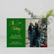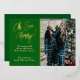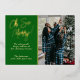 Cet élégant carte photo en papier d'aluminium présente un joyeux script de vacances sur un arrière - plan vert festif et la salle pour une grande photo de famille sur le devant et deux photos supplémentaires sur le dos. Imprimez et postez ou téléchargez-le par courrier électronique ou texte.