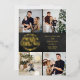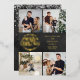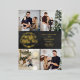 Un design de vacances élégant en véritable feuille d'or pour un collage de 4 photos, à personnaliser avec vos photos préférées, message, noms et année sur un fond de tableau noir. Le verso présente des flocons de neige tombant sur un fond de tableau noir assorti. Conçu par Thisisnotme©