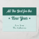 Véritable carte de vacances en papier. Joyeux Noël. Ajoutez votre photo et vos noms, ou votre nom de famille au dos. Crois en la magie. 'Tout le meilleur pour le Nouvel An' est au verso de la carte. Conçu en vert clair et foncé avec des billes et des étoiles dorées.