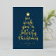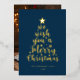 Script minimal une photo Marine bleu Joyeux Noël Foil Carte de vacances