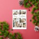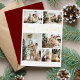 Un Carte de fin de année de Noël élégant et minimaliste avec six photos de famille personnalisées et une calligraphie en feuille d'or en disant "Joyeux Noël".
