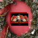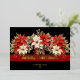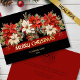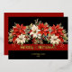 Élégant logo Entreprise Joyeux Noël Real Foil Carte de vacances. Ajoutez du papier peint à votre carte Holiday pour un look élégant. Cette carte Joyeuse Noël double face avec Poinsettias rouge et blanc sur un arrière - plan noir et Joyeux Noël en feuille est classique, minimal et droit pour la saison des Fêtes. Ajoutez votre texte et votre logo personnalisables à l'arrière. Découvrez notre collection de Noël d'entreprise avec le design Poinsettia et le ruban doré pour un look simple et cohésif pour votre saison de vacances et votre événement.